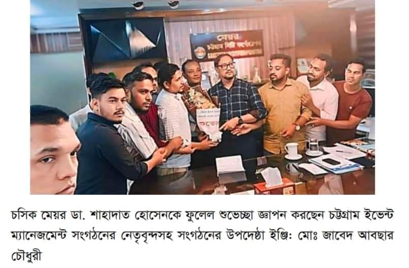 চসিক মেয়রের সাথে চট্টগ্রাম ইভেন্ট ম্যানেজমেন্ট ব্যবসায়ী সংগঠনের সৌজন্য সাক্ষাৎ