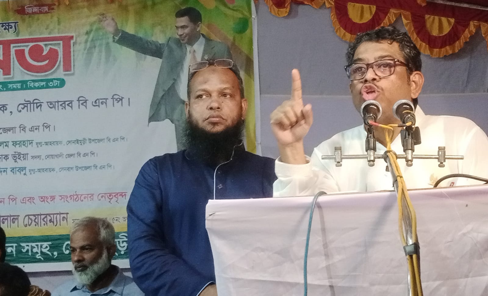 নোয়াখালীর সোনাইমুড়ীতে জাতীয় বিপ্লব ও সংহতি দিবস উপলক্ষে আলোচনা সভা অনুষ্ঠিত হয়। মঙ্গলবার (২৬ নভেম্বর ) বিকেলে নোয়াখালীর সোনাইমুড়ীতে জাতীয় বিপ্লব ও সংহতি দিবস উপলক্ষে ৫নং অম্বরনগর ইউনিয়ন বিএনপি ও অঙ্গ সংগঠনের আয়োজনে অম্বরনগর উচ্চ বিদ্যালয় মাঠে আলোচনা সভা অনুষ্ঠিত হয়েছে। ৫নং অম্বরনগর ইউনিয়ন বিএনপির সাবেক আহবায়ক শাহজালাল চেয়ারম্যান এর সভাপতিত্বে সঞ্চালনা করেন, ৫নং অম্বরনগর ইউনিয়ন বিএনপির সাবেক সিনিয়র যুগ্ম আহবায়ক ছাইফ উল্লাহ মাসুদ। প্রধান অতিথি হিসেবে বক্তব্য রাখেন,সৌদি আরব বিএনপির সিনিয়র যুগ্ম আহবায়ক ও নোয়াখালী-২ (সেনবাগ-সোনাইমুড়ী আংশিক) আসনে বিএনপির সংসদ সদস্য পদপ্রার্থী আবদুল মান্নান। বিশেষ অতিথি হিসেবে উপস্থিত ছিলেন, নোয়াখালী জেলা বিএনপির সাংগঠনিক সম্পাদক দিদার হোসেন,নোয়াখালী বিএনপির সদস্য আবদুর রাজ্জাক ভূঁইয়া,সোনাইমুড়ী উপজেলা বিএনপির সিনিয়র যুগ্ম আহবায়ক এডভোকেট তুহিন চৌধুরী,সোনাইমুড়ী উপজেলা বিএনপির যুগ্ম আহবায়ক এডভোকেট মাহমুদ হাসান শাকিল,সোনাইমুড়ী উপজেলা বিএনপির যুগ্ম আহবায়ক মাছুদুল আলম ফরহাদ,সেনবাগ উপজেলা বিএনপির যুগ্ম আহবায়ক জামাল উদ্দিন বাবলু,সোনাইমুড়ী উপজেলা বিএনপির সদস্য ইঞ্জিনিয়ার সলিম উল্লাহ সেলিম।
