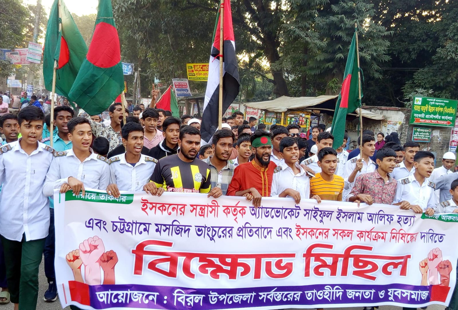 ইসকনের সকল কার্যক্রম নিষিদ্ধের দাবিতে বিরলে বিক্ষোভ মিছিল