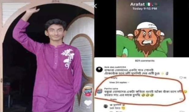 রাজশাহীর বাগমারা উপজেলার তাহেরপুরে মহানবী হযরত মুহাম্মদ (সা.) কে কটূক্তি করে ফেসবুকে মন্তব্য করায় শ্রী পার্থ দাস নামে এক হিন্দু কিশোরকে গতকাল ২৮ নভেম্বর বৃহস্পতিবার রাতে গ্রেফতার করেছে পুলিশ।
