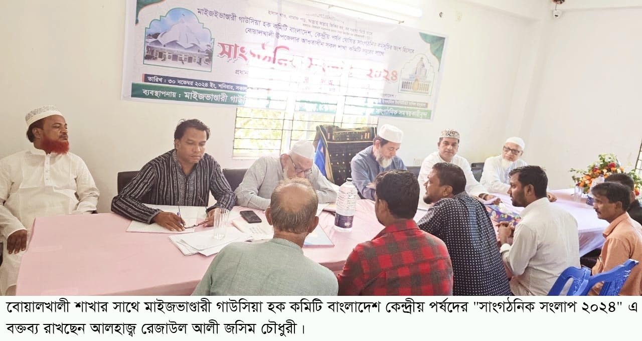 বোয়ালখালী শাখার সাথে মাইজভাণ্ডারী গাউসিয়া হক কমিটি বাংলাদেশ কেন্দ্রীয় পর্ষদের সাংগঠনিক সংলাপ অনুষ্ঠিত