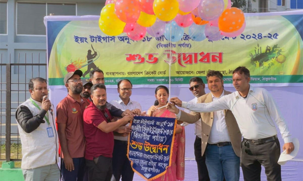 জাকজকমকপুর্ন আযোজনের মধ্য দিয়ে ইয়ং টাইগার্স অনূর্দ্ধ-১৮ জাতীয় ক্রিকেট টুর্নামেন্ট-২৪-২৫ (বিভাগীয় পর্যায়) উদ্বোধন করা হয়। ১ ডিসেম্বর রোববার শহীদ মোহাম্মদ আলী স্টেডিয়ামে বেলুন উড়িয়ে টুর্নামেন্টের উদ্বোধন করেন প্রধান অতিথি ঠাকুরগাঁও জেলা প্রশাসক ইশরাত ফারজানা। ঠাকুরগাঁও জেলা ক্রীড়া সংস্থার আয়োজনে ও বাংলাদেশ ক্রিকেট বোর্ডের ব্যবস্থাপনায় উদ্বোধনী অনুষ্ঠানে বক্তব্য দেন প্রধান অতিথি ঠাকুরগাঁও জেলা প্রশাসক ইশরাত ফারজানা, ঠাকুরগাঁও সদর উপজেলা নির্বাহী কর্মকর্তা মো: বেলায়েত হোসেন, ঠাকুরগাঁও জেলা ক্রীকেট কোচ রোকনুজ্জামান রাহাত প্রমুখ। উদ্বোধনী খেলায় পঞ্চগড় জেলা টিম জয়লাভ করে। ৫০ ওভারের খেলায় টসে জিতে ফিল্ডিংয়ের সিদ্ধান্ত নেয় পঞ্চগড় টিম। ব্যাটিংয়ে লালমনিরহাট টিম ২০ ওভার ৩ বল খেলে ১০ উইকেটে ৫২ রান করে। জবাবে পঞ্চগড় জেলা টিম ১৭ ওভার ২ বল খেলেই ৩ উইকেটেই জয় নিশ্চিত করে ৭ উইকেটে জয়লাভ করে। উল্লেখ্য, টুর্নামেন্টটি বিভাগীয় ২টি ভেন্যুত্যে অনুষ্ঠিত হচ্ছে। এর মধ্যে ঠাকুরগাঁও ভেন্যুতে মোট ৪টি টিম অংশগ্রহন করছে। টিমগুলো হলো পঞ্চগড়,লালমনিরহাট, দিনাজপুর ও নীলফামারী টিম। অপরদিকে লালমনিরহাট ভেন্যুতে ঠাকুরগাঁও, রংপুর, গাইবান্ধা ও কুড়্গ্রিাম টিম অংশগ্রহন করছে।