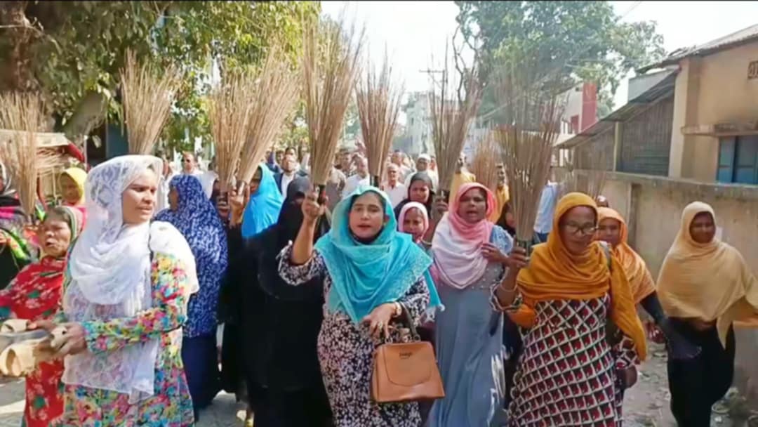 নেত্রকোণার মদনে ভারপ্রাপ্ত ইউএনওর বিরুদ্ধে বিএনপির ঝাড়ু মিছিল।