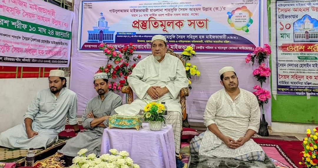 উপমহাদেশে মাইজভাণ্ডারী ত্বরিকার প্রতিষ্ঠাতা ইমামুল আউলিয়া গাউসুলআজম মাইজভাণ্ডারী মাওলানা শাহসুফি সৈয়দ আহমদ উল্লাহ্ প্রকাশ হজরত সাহেব কেবলা কাবার ১১৯তম প্রধান ওরশ শরীফ আগামী ১০ই মাঘ ২৪শে জানুয়ারি ২৫ সফল করার লক্ষ্যে ওরশ শরীফ সুপারভিশন কমিটির প্রস্তুতি ও সমন্বয় সভা আজ ৬ ডিসেম্বর জুমাবার বা'দ এশা মাইজভাণ্ডার দরবার শরীফ গাউছিয়া আহমদিয়া মঞ্জিলে অছিয়ে গাউসুলআজম মাইজভাণ্ডারী কতৃক মনোনীত দরবারে গাউসুলআজম মাইজভাণ্ডারীর মহামান্য জিম্মাদার,মুন্তাজেম ও সাজ্জাদানশীন আওলাদ আলহাজ্ব শাহসুফি সৈয়দ সহিদুল হক মাইজভাণ্ডারী (ম.)'র সভাপতিত্বে অনুষ্ঠিত হয় ।