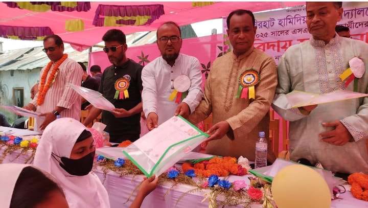 নোয়াখালী কবিরহাটে হাজিরহাট হামিদিয়া উচ্চ বিদ্যালয়ের ২০২৫ সালের এসএসসি পরীক্ষার্থীদের বিদায় ও নবগঠিত এডহক কমিটির সভাপতি নাজমুল হুদা ফরহাদকে সংবর্ধনা দেওয়া হয়েছে।
