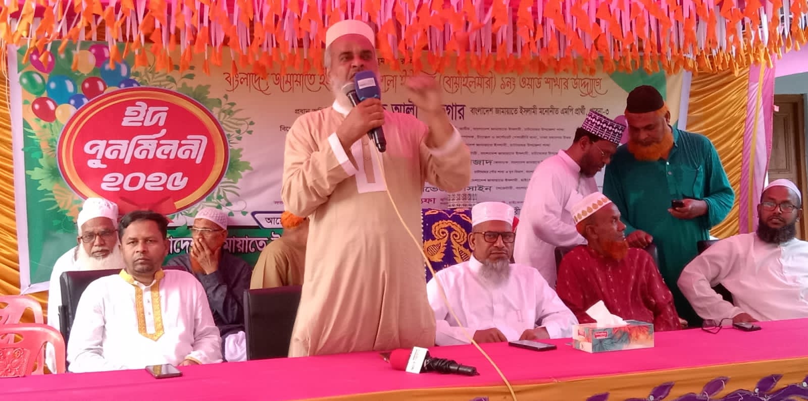 মোঃ সাবেদুল সরকার পাবনা জেলা প্রতিনিধি।-পাবনার চাটমোহর উপজেলা বাংলাদেশ জামায়াত ইসলামি ছাইকোলা ইউনিয়ন শাখার উদ্দোগে বোয়ালমারী দ্বিমুখী উচ্চ বিদ্যালয় মাঠে ঈদ পুনর্মিলনী অনুষ্ঠিত হয়েছে। উক্ত অনুষ্ঠানে প্রধান অতিথি হিসেবে উপস্থিত ছিলেন, মাওলানা অধ্যাপক আলী আসগর, বাংলাদেশ জামায়াতে ইসলামী মনোনীত এম পি পদপ্রার্থী পাবনা - ৩ আসন ও সাবেক আমীর ভাঙ্গুড়া উপজেলার শাখা। বিশেষ অতিথি হিসেবে উপস্থিত ছিলেন, মাওলানা আব্দুল হামিদ,আমীর বাংলাদেশ জামায়াত ইসলামি চাটমোহর উপজেলা শাখা। মোঃ ফজলুর রহমান, বাইতুল মাল সম্পাদক, ট্যাক্সেস ও কর্পোরেট পেশাজিবি ঢাকা মহানগর উত্তর। মোঃ হাবিবুর রহমান সেক্রেটারি, বাংলাদেশ জামায়াত ইসলামি চাটমোহর উপজেলা শাখা। মোঃ মোক্তার হোসেন তারবিয়্যাত সেক্রেটারি, বাংলাদেশ জামায়াত ইসলামি চাটমোহর উপজেলা শাখা। মাওলানা আবুল কালাম আজাদ, কোষাধ্যক্ষ বাংলাদেশ জামায়াত ইসলামি চাটমোহর উপজেলা শাখা। মোঃ আশরাফুল ইসলাম, সভাপতি বাংলাদেশ জামায়াত ইসলামি ছাইকোলা ইউনিয়ন শাখা। হাফেজ মাওলানা পারভেজ হোসাইন, সেক্রেটারি বাংলাদেশ ইসলামি ছাত্র শিবির ছাইকোলা ইউনিয়ন শাখাসহ সকল সহযোগী অঙ্গ সংগঠনের নেতৃবৃন্দ উপস্হিত ছিলেন। বক্তারা পাবনা ৩ আসনের চাটমোহর, ভাঙ্গুড়া ফরিদপুরের বাংলাদেশ জামায়াত ইসলামির মনোনিত এমপি পদপ্রার্থী মাওলানা অধ্যাপক আলী আজগর সাহেব কে ভোট দিয়ে সংসদে কুরআনের আইন পাশ ও আল কোরআন এর আলোকে রাষ্ট্র গঠন করার জন্য আপনাদের মূল্যবান ভোট দিয়ে বিপুল ভোটে জয়যুক্ত করার আহ্বান জানান। আলোচনা শেষে সকল শহীদের প্রতি শ্রদ্ধা নিবেদন করেন, দোয়ার মধ্য দিয়ে আলোচনা শেষ করেন।