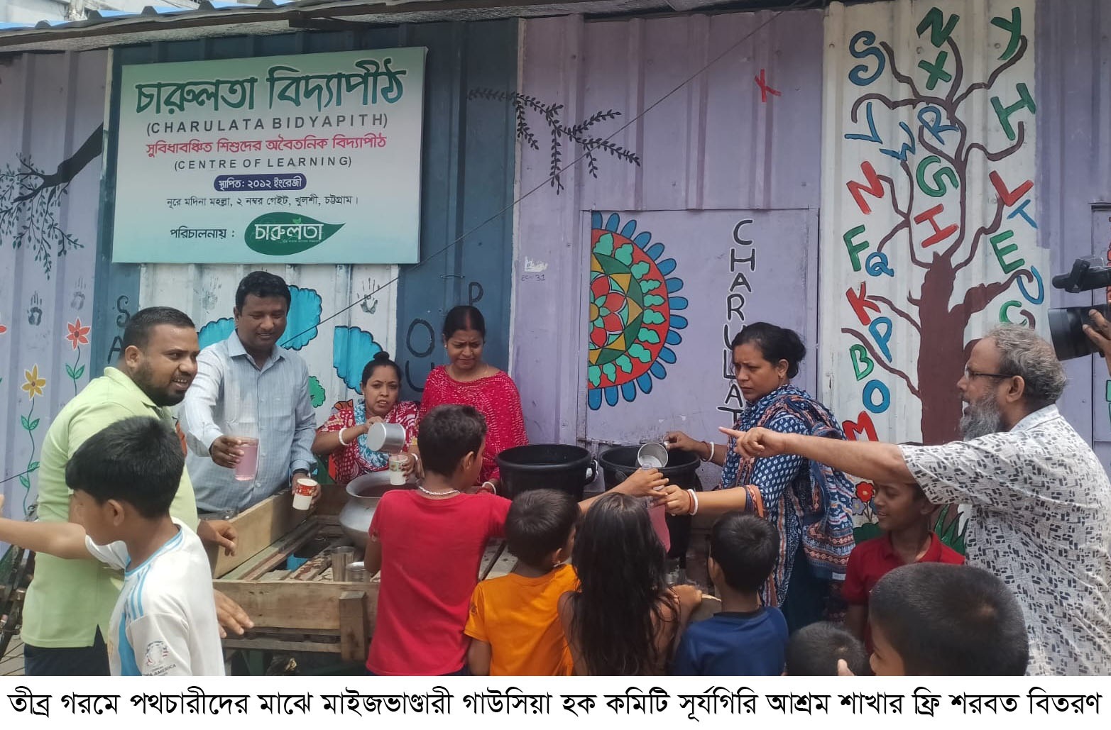 বর্তমানে এই তীব্র গরমে পথচারীদের জন্য মাইজভাণ্ডারী গাউসিয়া হক কমিটি সূর্যগিরি আশ্রম শাখার ফ্রি শরবত বিতরণ