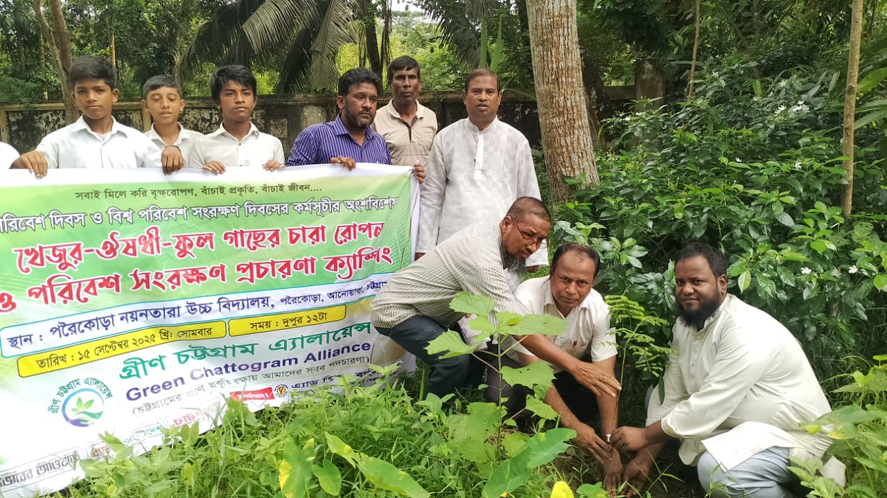 দক্ষিণ চট্টগ্রামের আনোয়ারা উপজেলার পরৈকোড়া নয়নতারা উচ্চ বিদ্যালয়ে ঔষধি, খেজুর ও ফুলচারা গাছ রোপণ ও পরিবেশে সংরক্ষণ ক্যাম্পিং অনুষ্ঠিত হয়।