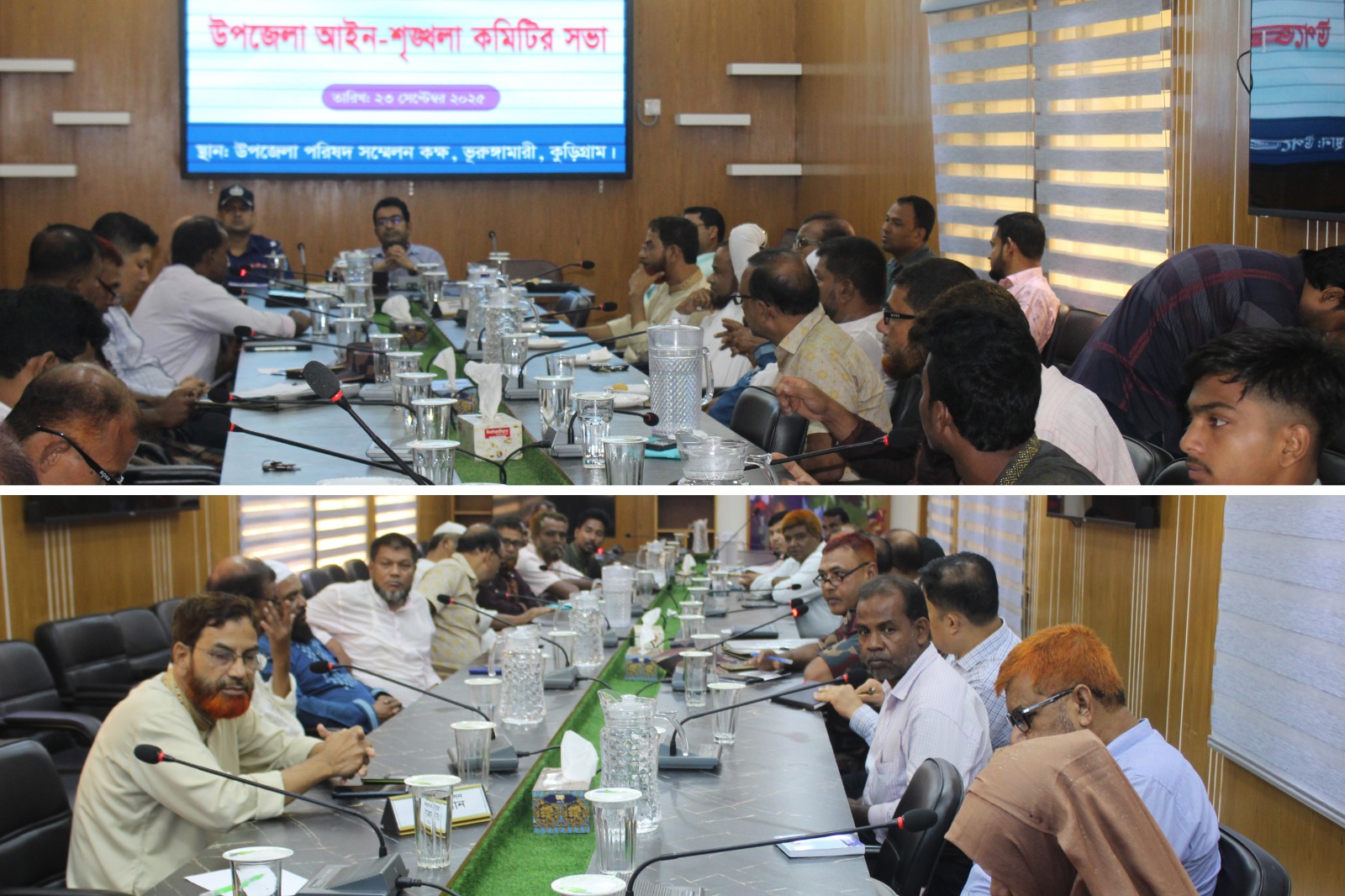 ভূরুঙ্গামারীতে আইন-শৃঙ্খলা সভা: মাদক, গরু পাচার ও ভুয়া কাগজপত্র প্রতিরোধে কঠোর পদক্ষেপের আহ্বান