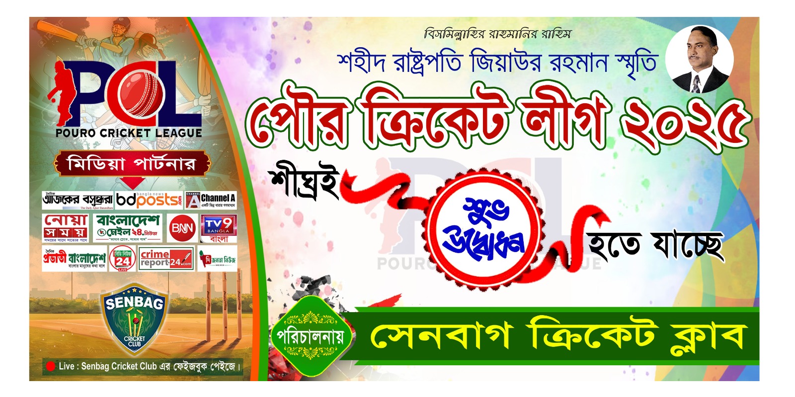 নোয়াখালী জেলার সেনবাগ উপজেলার সেরা খেলোয়াড়দের নিয়ে শীঘ্রই জমজমাট আয়োজনে উদ্বোধন হতে যাচ্ছে শহীদ রাষ্ট্রপতি জিয়াউর রহমান স্মৃতি “পৌর ক্রিকেট লীগ ২০২৫” ( PCL) । পুরো আয়োজনটির পেছনে রয়েছে সেনবাগ ক্রিকেট ক্লাব।