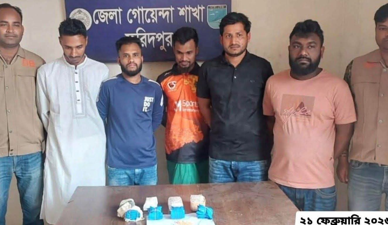 ফরিদপুরের কোতয়ালী থানাধীন রঘুনন্দপুরের হাউজিং এস্টেট থেকে ৫জন মাদক ব্যবসায়ীকে বিপুল পরিমাণ ইয়াবাসহ গ্রেফতার করা হয়েছে।