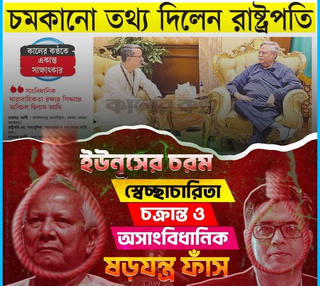 কালের কণ্ঠকে দেওয়া এক রোমহর্ষক সাক্ষাতকারে তিন উন্মোচন করেছেন ইউনূসের চরমহ স্বেচ্ছাচারিতা, সংবিধান লঙ্ঘন এবং রাষ্ট্রপতির পদকে বিভিন্ন ভাবে অবমাননা করার চিত্র। ইউনুসের হাজারো ষড়যন্ত্র ও অসাংবিধানিক চাপের মুখে পড়েও পাহাড়সম মনোবল নিয়ে দেশের সাংবিধানিক ধারাবাহিকতা রক্ষার জন্য একাই লড়াই করে গেছেন নিজ জায়গা থেকে।