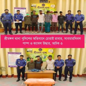 অপরদিকে শুক্রবার (৬ মার্চ) রাত আনুমানিক ২টা ৩০ মিনিটে এসআই হারুন রশিদের নেতৃত্বে পুলিশের আরেকটি অভিযানিক দল শ্রীমঙ্গল থানার রাধানগর এলাকার একটি লেবু বাগানে অভিযান চালায়। এ সময় মো. সুমন মিয়া (২২) ও মো. রিপন মিয়া (১৯) নামে দুই যুবককে আটক করা হয়। তারা হবিগঞ্জ জেলার বানিয়াচং উপজেলার সুজাতপুর গ্রামের বাসিন্দা এবং মোহাম্মদ আলীর ছেলে। তাদের কাছ থেকে একটি সাবমারসিবল পাম্প ও ইলেকট্রিক ক্যাবল উদ্ধার করা হয়, যার আনুমানিক মূল্য প্রায় ২৫ হাজার টাকা।