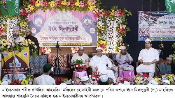 রাহমাতুল্লিল আলামিনের প্রতিনিধি সুফিরাই এদেশে ইসলাম প্রচার করেছেন : সৈয়দ সহিদুল হক মাইজভাণ্ডারী স,ম,জিয়াউর রহমান চট্টগ্রাম জেলা স্টাফ রিপোর্টারঃ উপমহাদেশের অন্যতম আধ্যাত্বিক দরবার মাইজভাণ্ডার শরীফ গাউছিয়া আহমদিয়া মঞ্জিলের হোসাইনী ময়দানে