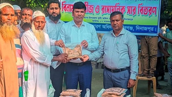 বীরগঞ্জে প্রান্তিক কৃষকদের মাঝে সার ও বীজ বিতরণ মোজাম্মেল হক,বীরগঞ্জ(দিনাজপুর জেলা) প্রতিনিধি: দিনাজপুরের বীরগঞ্জে ৪হাজার ১৮০ জন ক্ষুদ্র ও প্রান্তিক কৃষকদরে মাঝে বিনামূল্যে সার ও বীজ বিতরণ করা হয়েছে। বৃহস্পতিবার