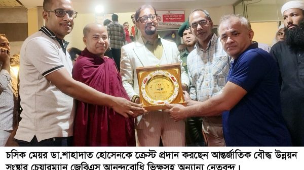মেয়র ডা.শাহাদাত হোসেনের সাথে আনন্দ বার্তার সম্পাদক ও প্রকাশক জেবিএস আনন্দবোধি ভিক্ষুর সৌজন্য সাক্ষাৎ