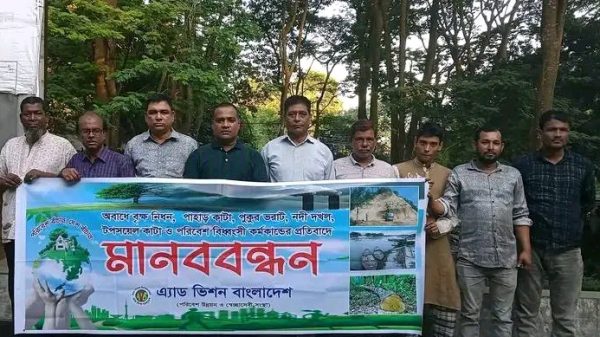 পাহাড় কাটা,নদী ভরাট ও বৃক্ষ নিধনসহ পরিবেশ বিধ্বংশী কার্যক্রমের প্রতিবাদে