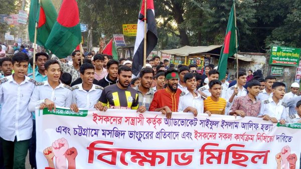 ইসকনের সকল কার্যক্রম নিষিদ্ধের দাবিতে বিরলে বিক্ষোভ মিছিল