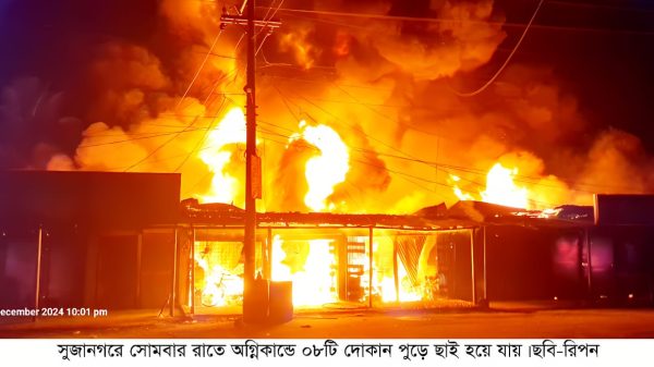 সুজানগরে ভয়াবহ অগ্নিকাণ্ডে ৮ দোকান পুড়ে ছাই, নেভাতে গিয়ে দগ্ধ পাঁচ।