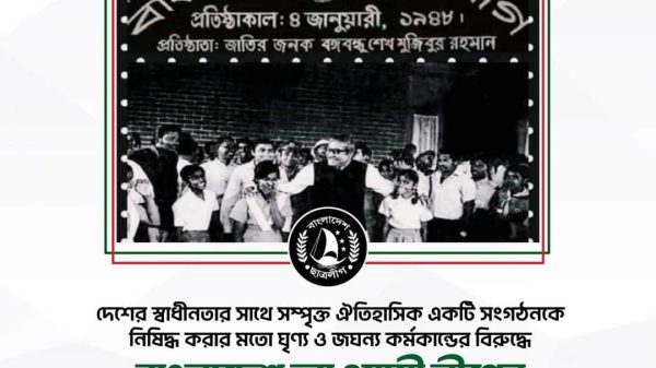 বাংলাদেশ তথা উপমহাদেশের প্রাচীনতম ছাত্র সংগঠনের নাম বাংলাদেশ ছাত্রলীগ সেই বাংলাদেশ ছাত্রলীগকে নিষিদ্ধ করার সিদ্ধান্তের নিন্দা ও প্রতিবাদ জানাই রিপোর্টঃ-দৈনিক বাংলার মুক্তকন্ঠ,সংবাদ পত্রিকা।। বাংলাদেশ তথা উপমহাদেশের প্রাচীনতম,ঐতিহ্যবাহী ছাত্র সংগঠন বাংলাদেশ