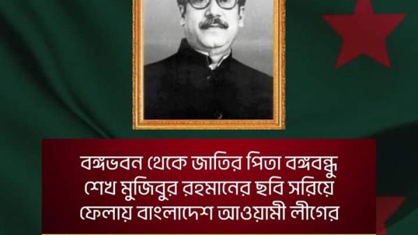 বঙ্গভবন থেকে জাতির পিতা বঙ্গবন্ধু শেখ মুজিবুর রহমানের ছবি সরিয়ে ফেলায় বাংলাদেশ আওয়ামী লীগের প্রতিবাদ