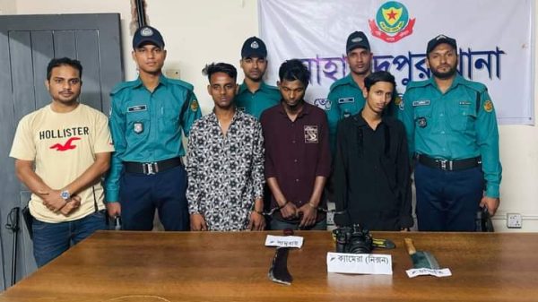 সাংবাদিকের ছিনতাই হওয়া ক্যামেরা উদ্ধার;দেশীয় অস্ত্র সহ পেশাদার তিন ছিনতাইকারী গ্রেফতার