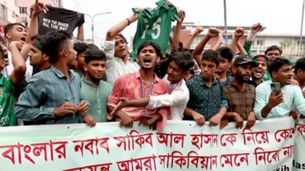 মিরপুরে ‘সাকিবিয়ান’দের স্লোগান! নিজস্ব প্রতিবেদন দৈনিক বাংলার মুক্তকন্ঠ। গতকাল ১৭ অক্টোবর বৃহস্পতিবার মিরপুর শেরেবাংলা স্টেডিয়ামের ‘মিরপুরের ছাত্র-জনতা’র ব্যানারে একটা দল সাকিববিরোধী অবস্থান নিয়েছিল। সাকিবকে দল থেকে বাদ দেওয়ার দাবি তুলে read more