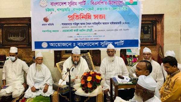 চট্টগ্রাম বিভাগীয় প্রতিনিধি সভায় বিএসপি চেয়ারম্যান সৈয়দ সাইফুদ্দীন আহমদ মাইজভাণ্ডারী-দ্রব্যমূল্যের ঊর্ধ্বগতিতে জনগণ দিশেহারা বাজার সিন্ডিকেট নিয়ন্ত্রণে ব্যর্থ হলে অন্তর্বর্তীকালীন সরকার জনগণের সমর্থন হারাবে,,(স ম জিয়াউর রহমান,চট্টগ্রাম থেকেঃ) বাংলাদেশ সুপ্রিম পার্টি