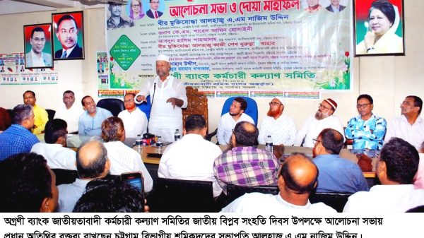 অগ্রণী ব্যাংক জাতীয়তাবাদী কর্মচারী কল্যাণ সমিতির জাতীয় বিপ্লব সংহতি দিবস উপলক্ষে আলোচনা সভায় এ এম নাজিম উদ্দিন-শ্রমিকেরা অধিকার বঞ্চিত হলে কোন প্রতিষ্ঠানের উন্নতি করা সম্ভব হয় না স ম জিয়াউর read more