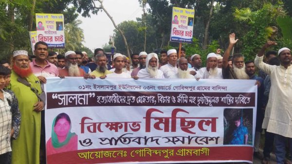 রাজবাড়ীতে স্বামী পরিত্যক্তা নারী সালমা হত্যাকারীদের গ্রেপ্তারের দাবীতে মানববন্ধন ও বিক্ষোভ মোঃ জাহিদুর রহিম মোল্লা জেলা প্রতিনিধি রাজবাড়ী॥ রাজবাড়ীর বালিয়াকান্দিতে সালমা আক্তার নামে এক স্বামী পরিত্যাক্তা নারী হত্যাকারীদের গ্রেপ্তার দাবীতে read more