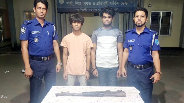 নরসিংদীতে অত্যাধুনিক অস্ত্রসহ দুই যুবক গ্রেপ্তার মোঃএমরুল ইসলাম,ষ্টাফ রিপোর্টার,নরসিংদীঃ নরসিংদীতে অত্যাধুনিক অস্ত্র চাইনিজ রাইফেল সহ দুই যুবককে গ্রেপ্তার করেছে নরসিংদী মডেল থানা পুলিশ। গ্রেপ্তারকৃতরা হলেন,নরসিংদীর রায়পুরা উপজেলার হাঁটুভাঙা গ্রামের আফাজ