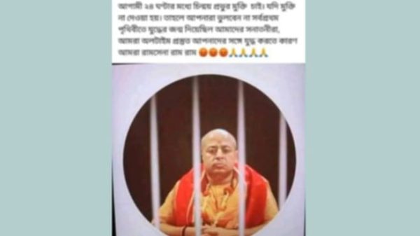 চিন্ময় দাসের মুক্তি চেয়ে ফেসবুকে পোস্ট:পুলিশে দিলেন বাবা ছেলেকে সুনামগঞ্জ জেলার জামালগঞ্জে চিন্ময় কৃষ্ণ দাসের মুক্তি চেয়ে ফেসবুকে পোস্ট দিয়েছে অভি দাস (১৭) নামের এক কিশোর। এছাড়া ওই পোস্টে যুদ্ধেরও read more